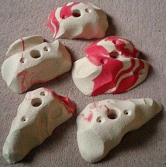 全体的に複雑な形状にして凹ホールに鋭角さをつけました 上段から とりあえず持ちは良い 付け方によっては持ち良い/ピンチ系(持ちは良くない) ピンチ系/付け方によっては持ち良い